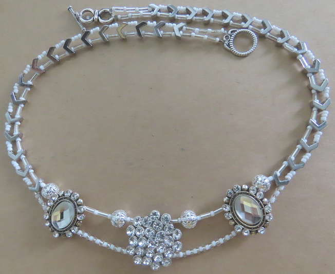 That looks like holiday party jewelry. Sooo shiny, like ice and snowflakes! :D Do you have any of those arrows left? You could make matching snowflake earrings.